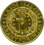 A “Középkori magyar aranyforintok” sorozat második darabja I. Lajos aranyforintjára emlékezik. A magyar aranyforintok éremképe I. (Nagy) Lajos király uralkodása (1342–1382) idején alapvető átalakuláson ment keresztül. Az első aranypénzei még az apja, I. Károly (v. Károly Róbert) firenzei típusú aranypénzével egyeztek meg. A következő változaton az előoldalra a firenzei liliom helyett a magyar-Anjou címer került, a hátlapot továbbra is Szent János alakja díszítette. A harmadik típus hátlapjára az uralkodó által kiemelt tiszteletben részesített lovagkirály, Szent László álló alakja került, kezében legfontosabb attribútumával, a bárddal (az előoldalon maradt a címer). Az így kialakított éremkép kisebb változtatásokkal tovább élt egészen a 16. század végéig. Az MNB 2013.évi emlékérméjén Nagy Lajos érméi közül a Szent-László ábrázolású aranyveret került megörökítésre.