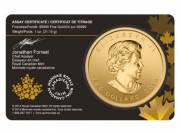 • A Royal Canadian Mint gravírozással, gyönyörű részletességgel készült. Egy mikro-gravírozott juharlevél lézer jel található az érme területén, nagyítás alatt "14" számjegy látható, ami az érme kiadásának évét jelöli.