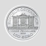 2008. február óta az osztrák pénzverde gyártja a Bécsi Filharmónikusok érme ezüst változatát is, amely grafikájában egyezik az aranyéval. Anyaga 99,9% ezüst, finomabb mint az ékszerkészítéshez használt .925 Sterling ezüst.