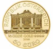 1989-ben az Osztrák Köztársaság, Európában Nagy Britannia után másodikként megkezdte az 1 és 1/4 unciás aranyérmék verését. A nagy kedveltségre és keresettségre való tekintettel 1991-ben következtek az 1/10 és 1994-tõl a 1/2 unciás darabok. Az euró bevezetésével 2002. január 1-tõl a névérték schillingrõl euróra változott. Máig is az egyetlen euró névértékû befektetési érme! Az átszámítás és az ehhez csatlakozó, egész névértékre való kerekítés miatt a "régi" schilling-érmék magasabb névértéket hordoznak. Átmérõ tekintetében, amely az egy unciás érme esetében 37 mm, a Filharmonikusok a legnagyobb befektetési célú aranyérme. 2008-ban ez a befektetési arany érme volt a legkeresettebb a világon! Az eladási csúcsot elõször már 2009-ben, majd újra és újra túlszárnyalja.