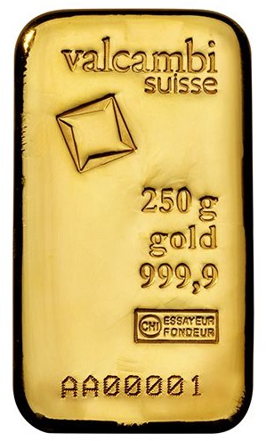 Valcambi Suisse 250 gramm befektetési arany rúd öntvény 999.9